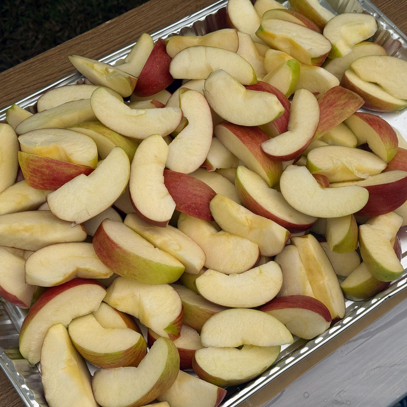おもてなしのリンゴ。私は固形物を食べると走れなくなる体質なため、観賞用。美味しそう。