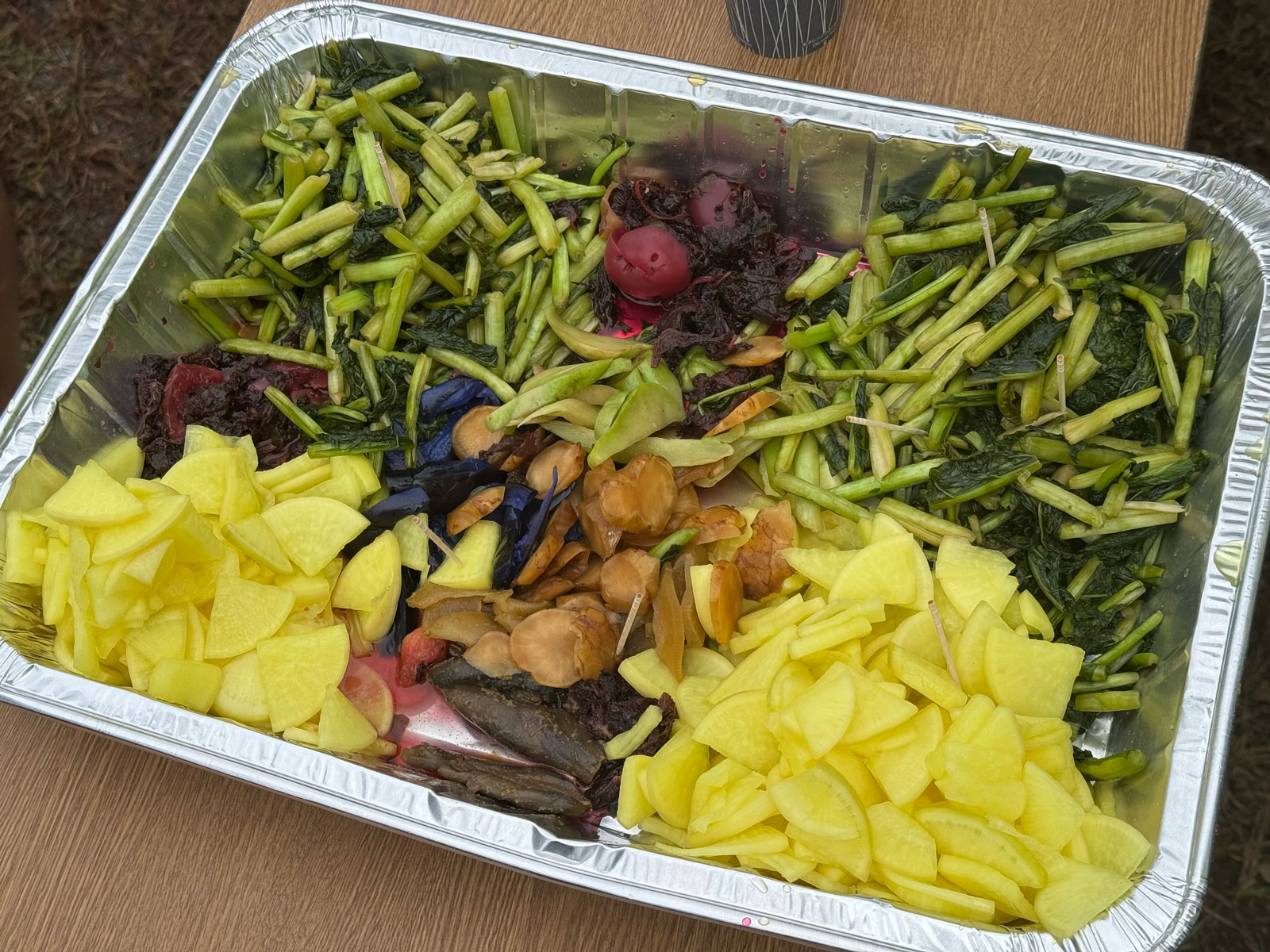 おもてなしの漬物。美味しいお茶もあります。