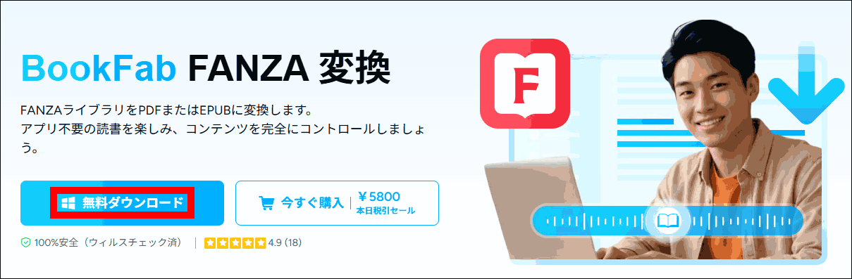 BookFab FANZAとは、DVDFabシリーズで知られるソフトウェアメーカーが開発・販売している、電子書籍ダウンローダー(変換ツール)の一つです。具体的には、FANZAで購入した電子書籍をPDFやEPUB、JPGなどの汎用的な形式に変換してPCに保存できるソフトウェアです。
