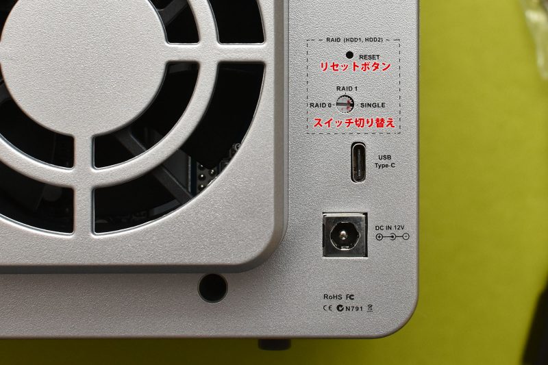2.スイッチでRAID 0 / RAID 1 /Singleを選択後、リセットボタンを5秒押し