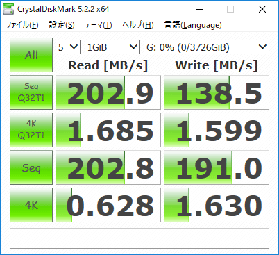 * KB = 1000 bytes, KiB = 1024 bytesSequential Read (Q= 32,T= 1) : 202.941 MB/s