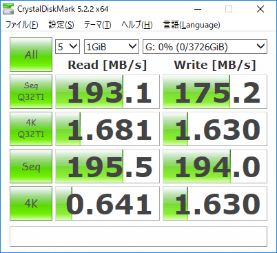 * KB = 1000 bytes, KiB = 1024 bytesSequential Read (Q= 32,T= 1) : 193.140 MB/s